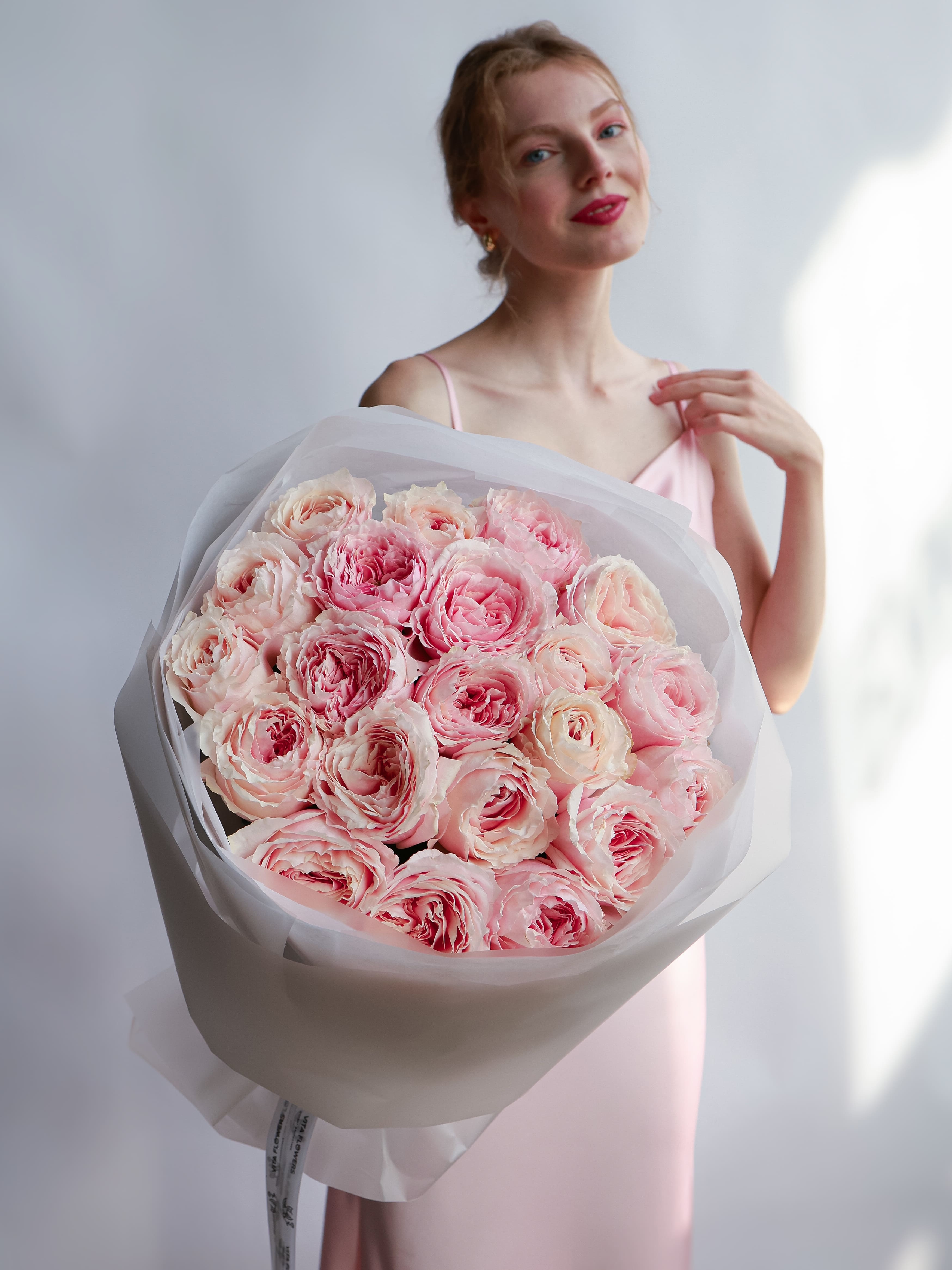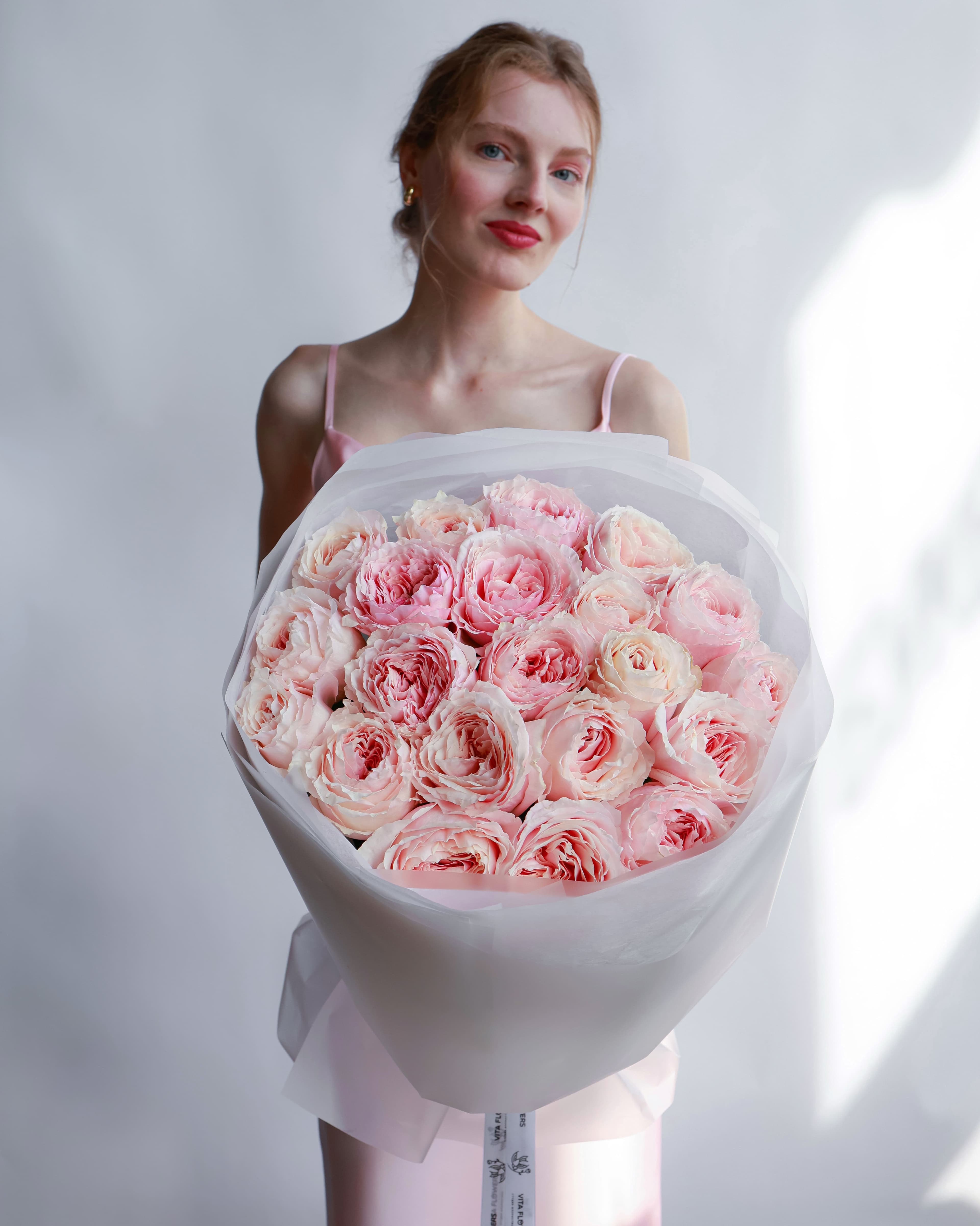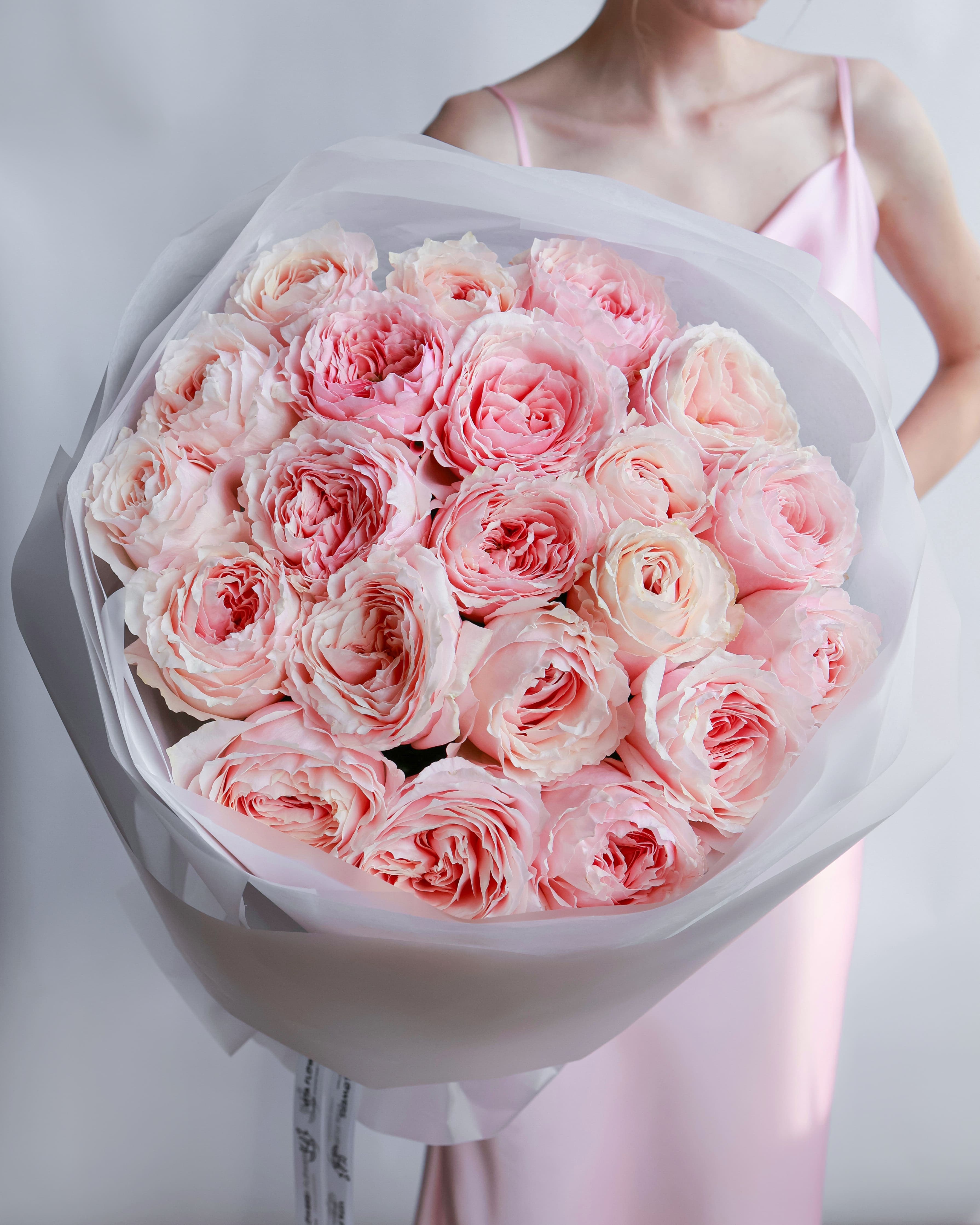 Минимализм, воплощённый в совершенстве. Пионовидные розы покоряют своими крупными бутонами и насыщенным ароматом. Каждый цветок — как отдельное произведение искусства.