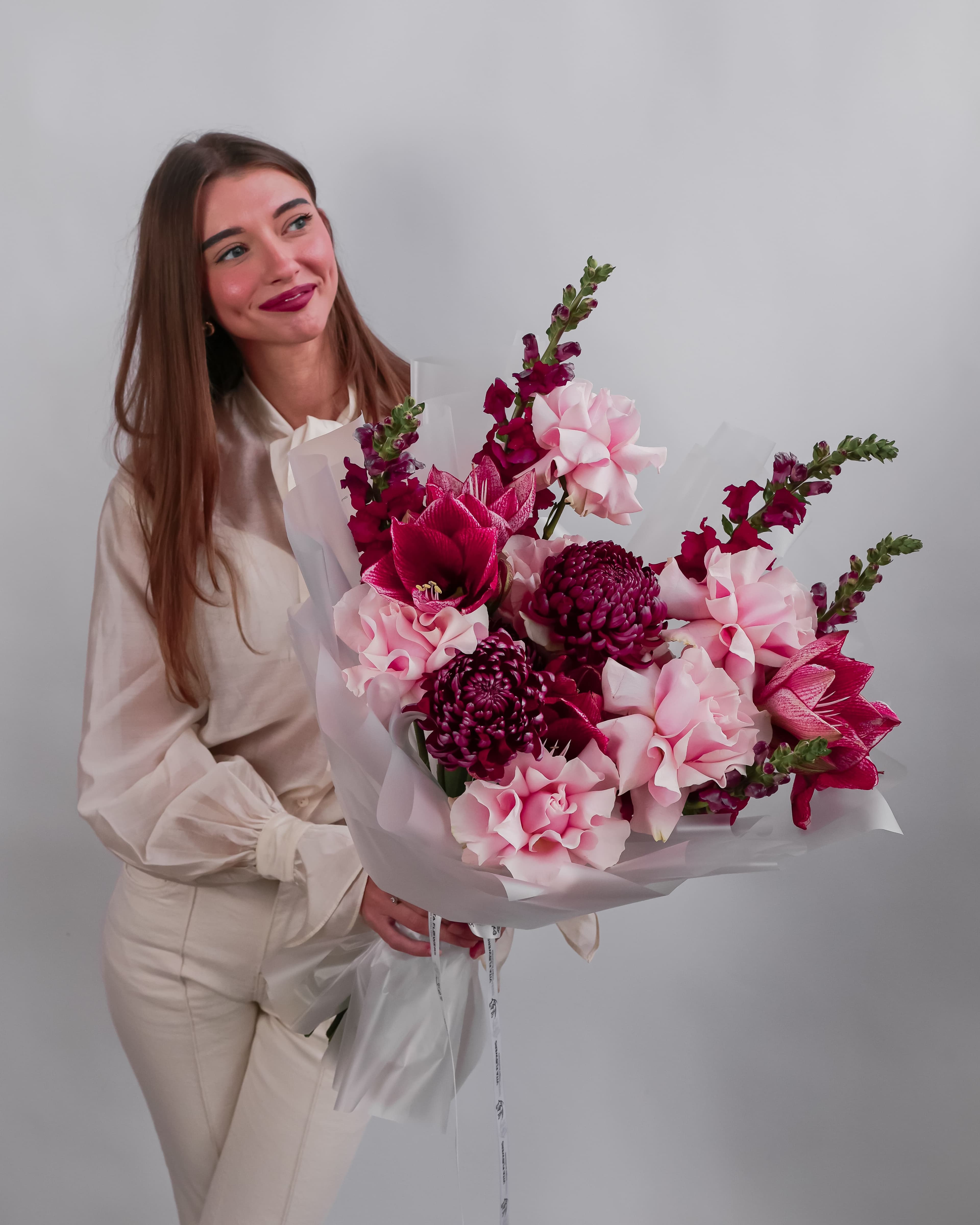 Идеален для торжественных событий, праздничного поздравления или яркого комплимента. Амариллис становится выразительным центром букета, подчёркивая его характер.