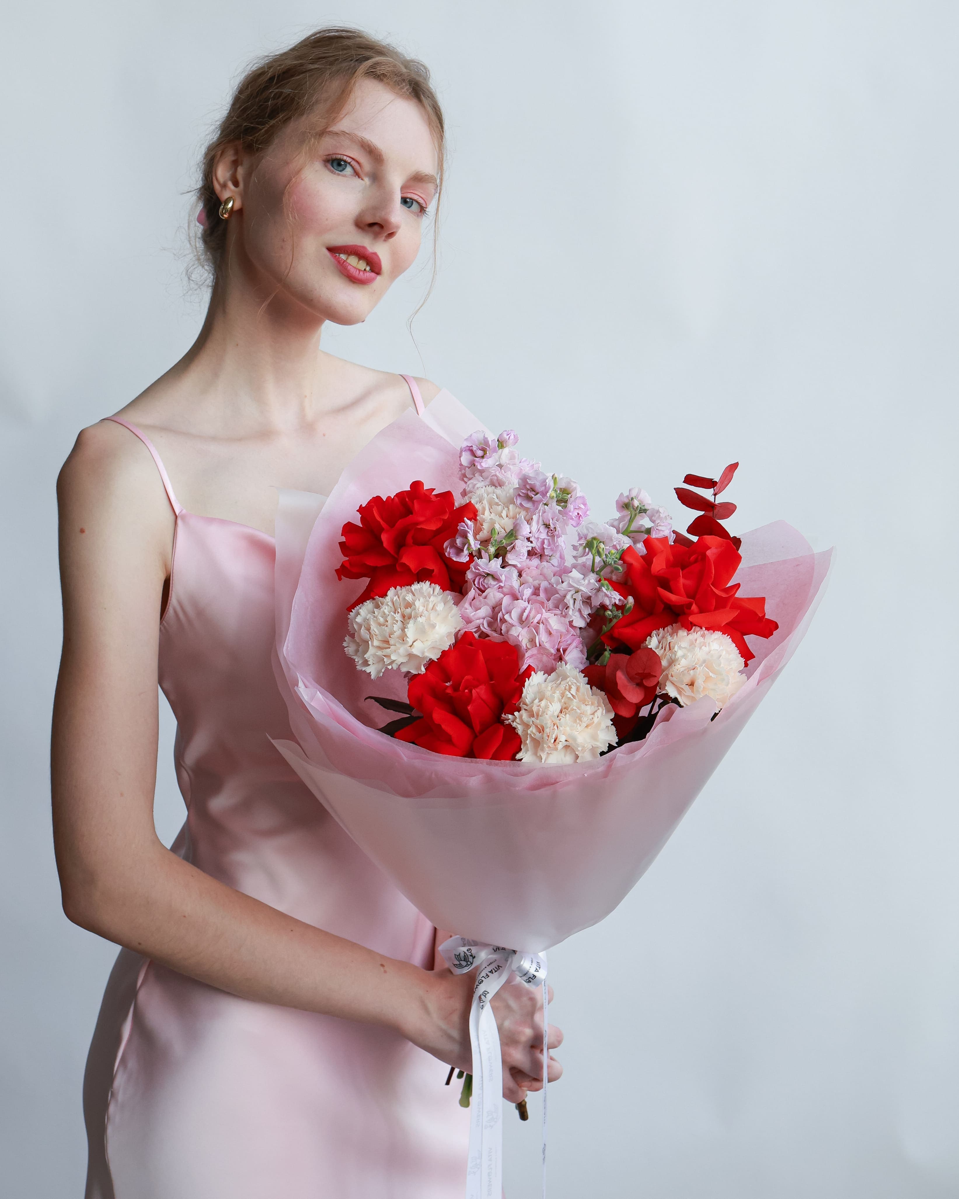 К сожалению, мы не можем гарантировать 100% копию букета, ежедневно в нашу мастерскую приезжают цветочки с разных уголков света, и они имеют свойство отличаться. Со своей стороны, мы гарантируем соблюсти основной состав и стиль вашего букета, в этом вы можете не сомневаться