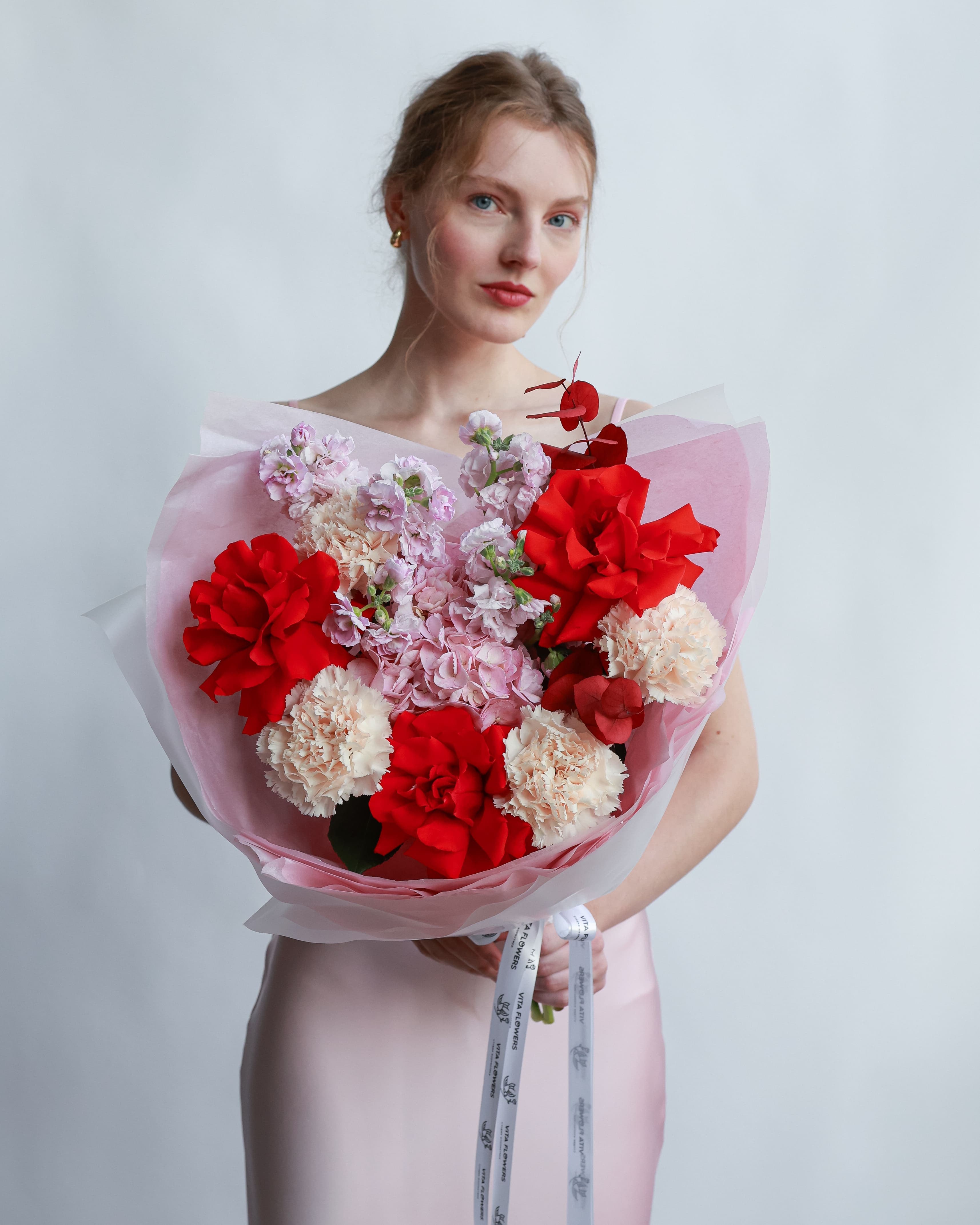 Такой букет станет центром внимания — идеален для торжества, юбилея или свадебного подарка. Гармония форм и текстур делает композицию премиальной.