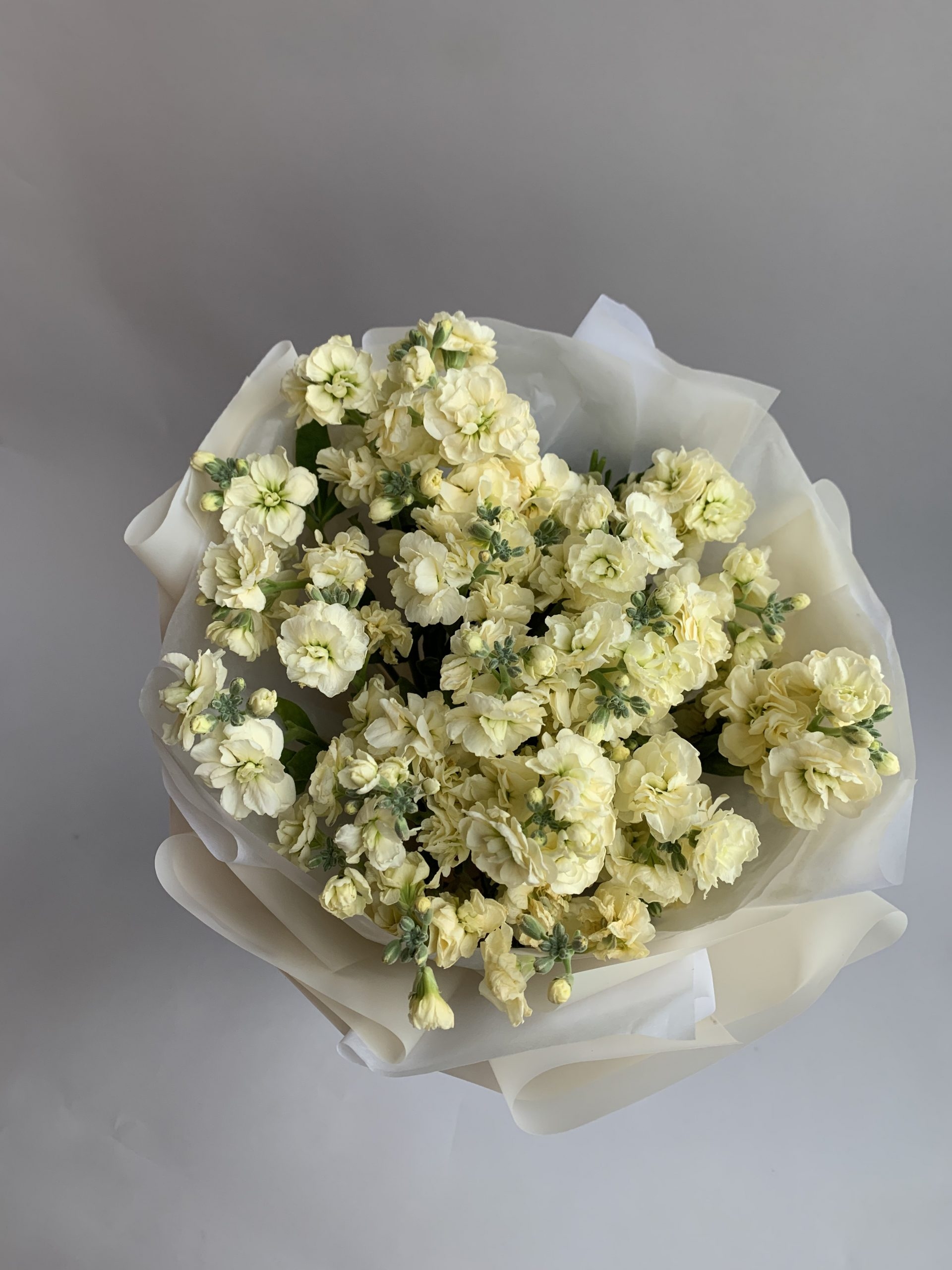 Букет с Маттиолой кустовой радует ярким и солнечным цветом. Нежные цветы с приятным ароматом создают атмосферу тепла и уюта. Этот букет станет отличным подарком для близких и украсит любой интерьер.
