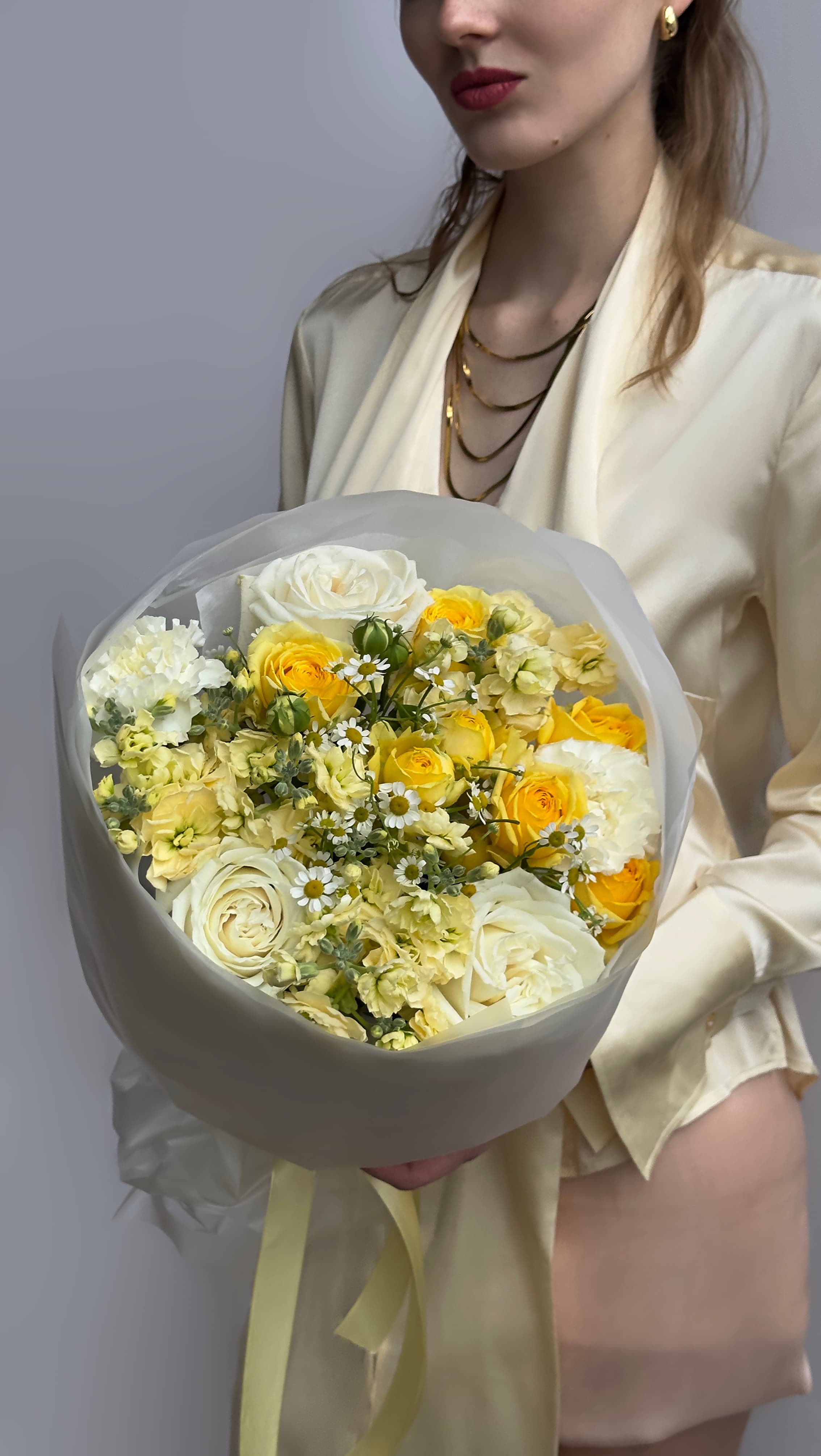 К сожалению, мы не можем гарантировать 100% копию букета, ежедневно в нашу мастерскую приезжают цветочки с разных уголков света, и они имеют свойство отличаться. Со своей стороны, мы гарантируем соблюсти основной состав и стиль вашего букета, в этом вы можете не сомневаться