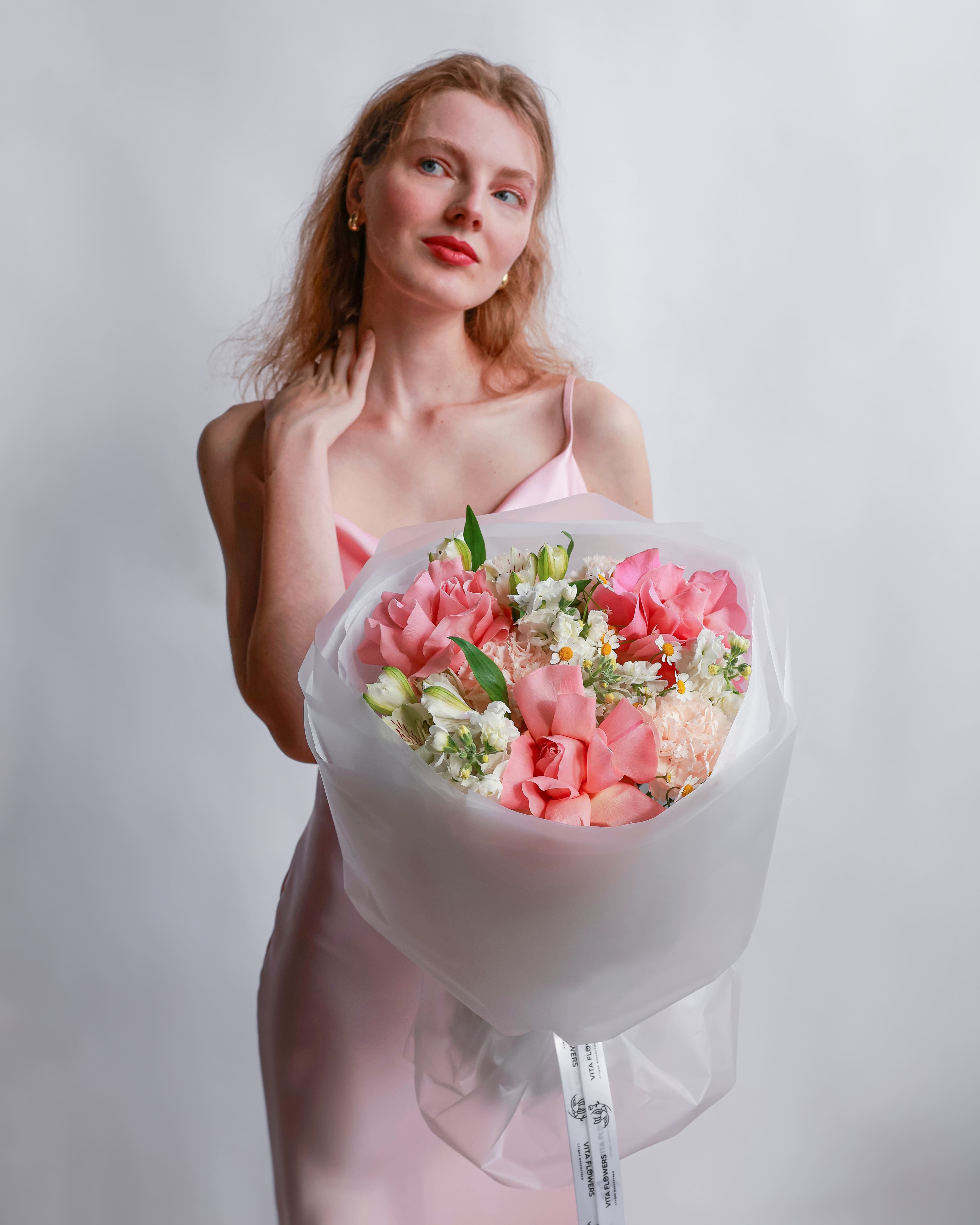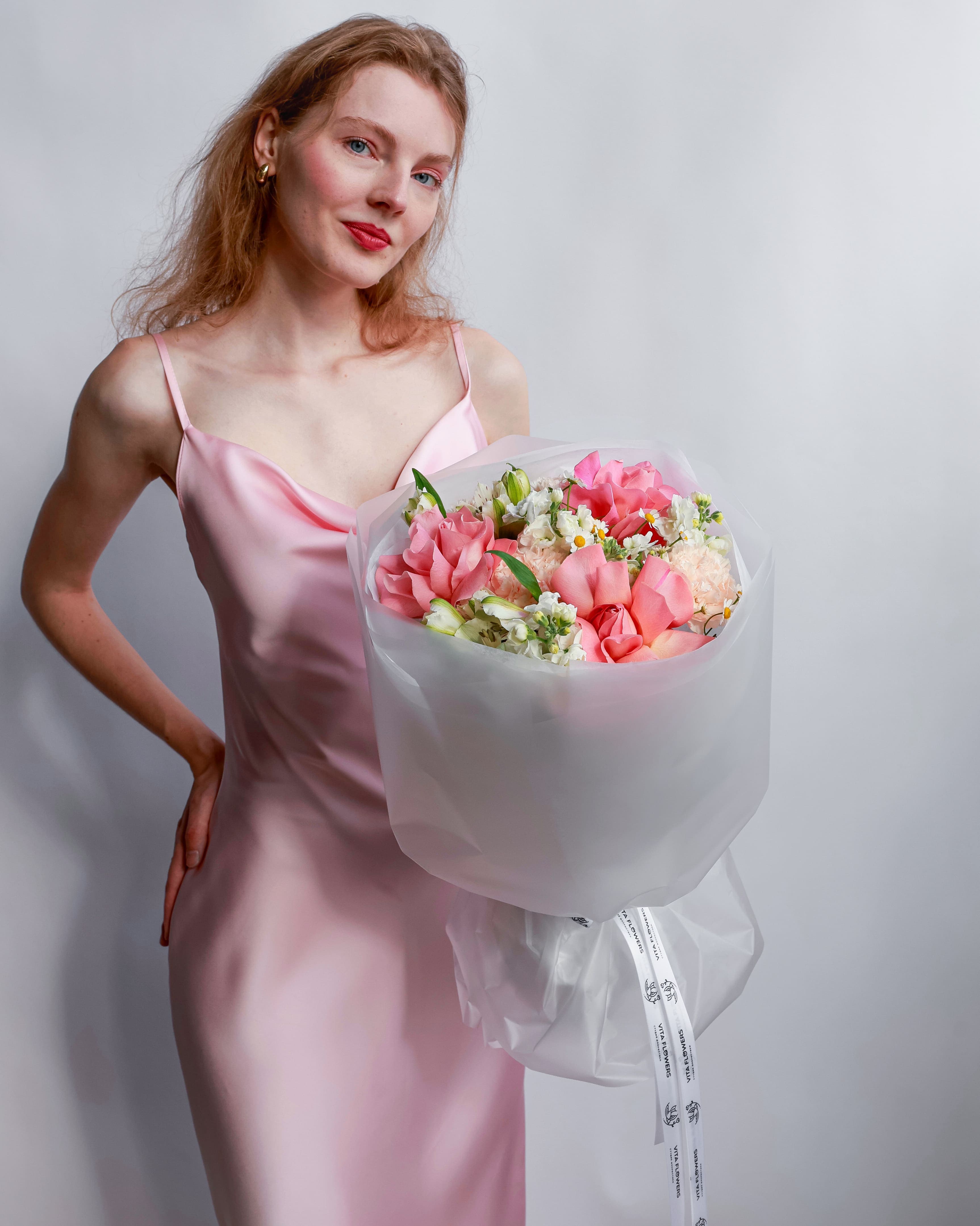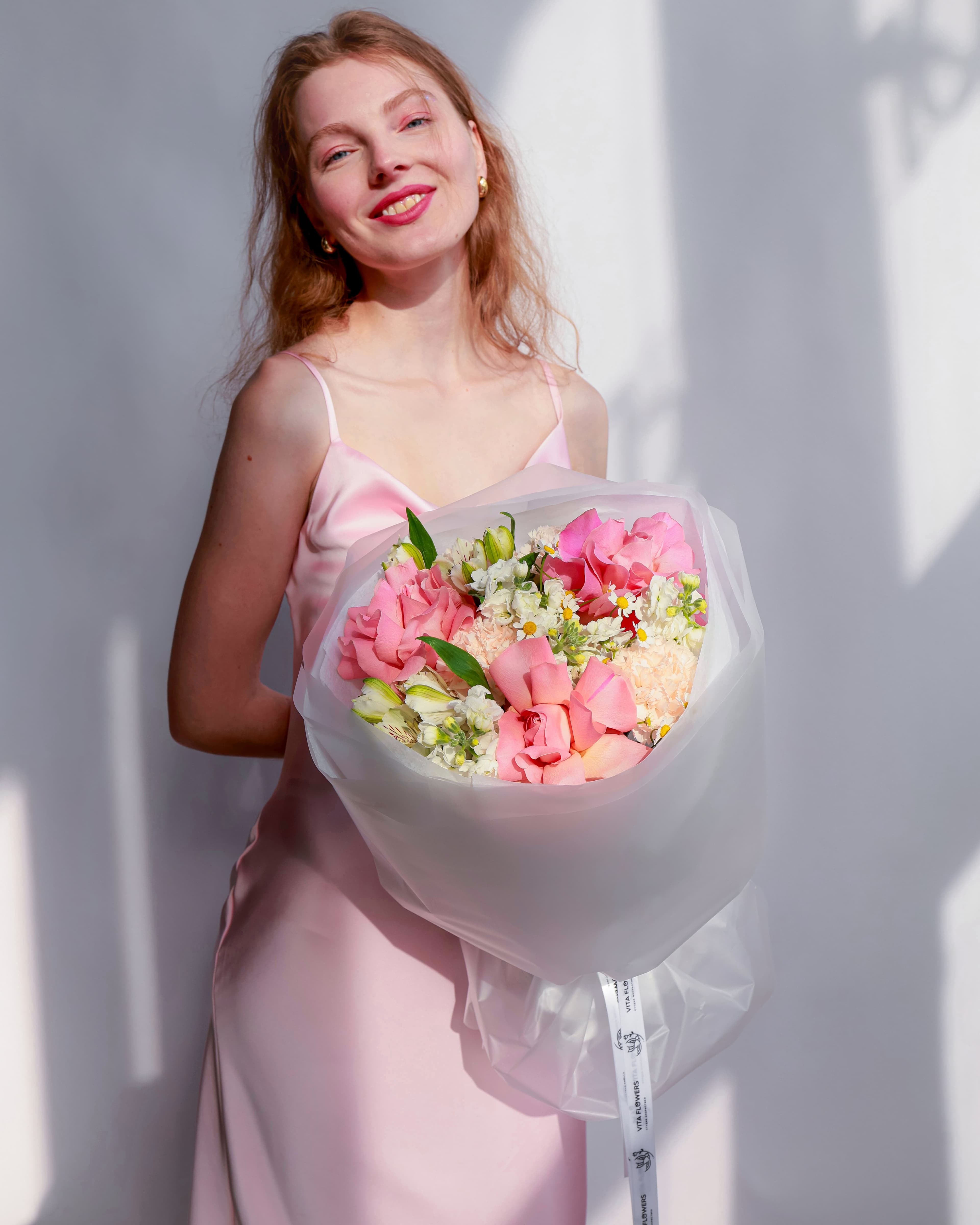 Композиция остаётся свежей до 7–10 дней при регулярной смене воды. Мы доставим букет по Москве и области точно в срок, с заботой о каждой детали.